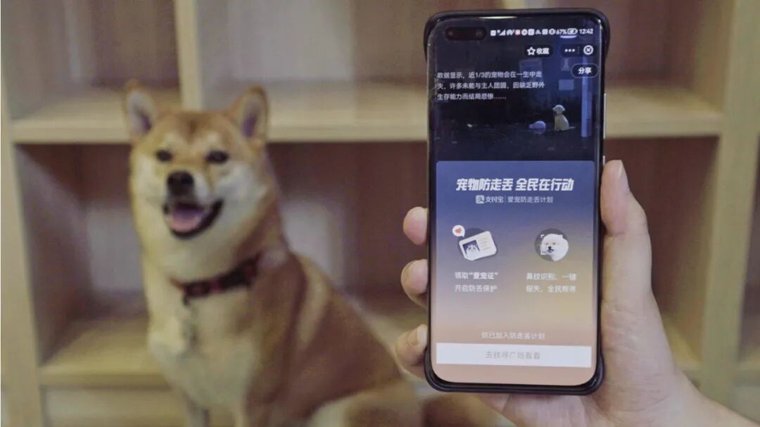 一旦宠物走丢,主人可一键报失,如果路人看到走丢宠物,也能用支付宝扫鼻纹进行识别。
