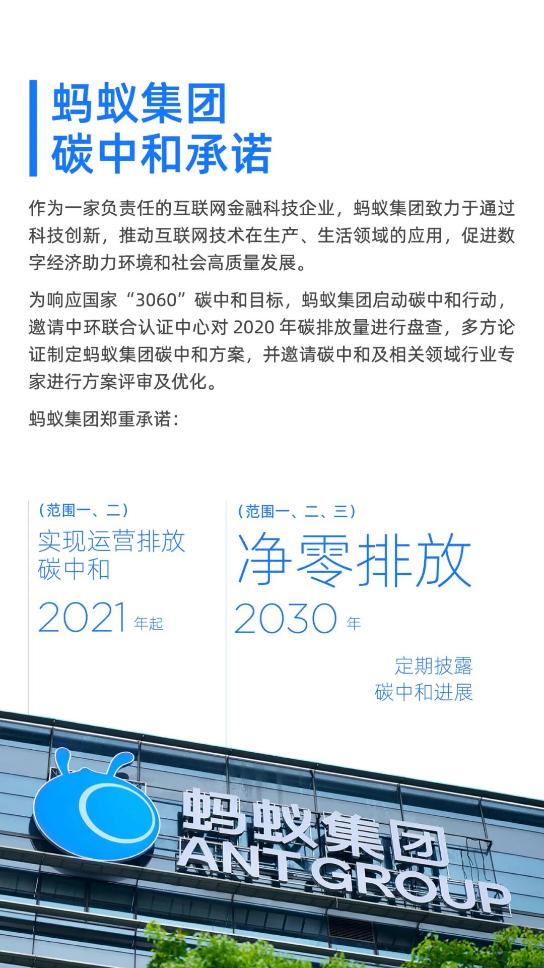 3月12日,蚂蚁集团对外公布碳中和目标。