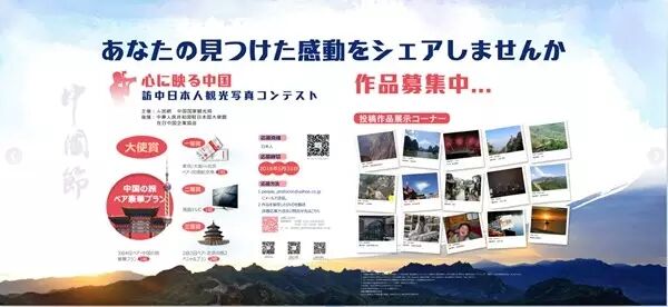 中国節文化観光PRの一環として、人民網と中国国家観光局主催の「心に映る中国―訪中日本人観光写真コンテスト」も、会場で映像やポスターの形で展示され、現在すでに投稿されている作品の一部も展示される。また、人民網は中国色豊かな限定グッズを用意しており、インタラクティブに参加した来場者に贈呈する。