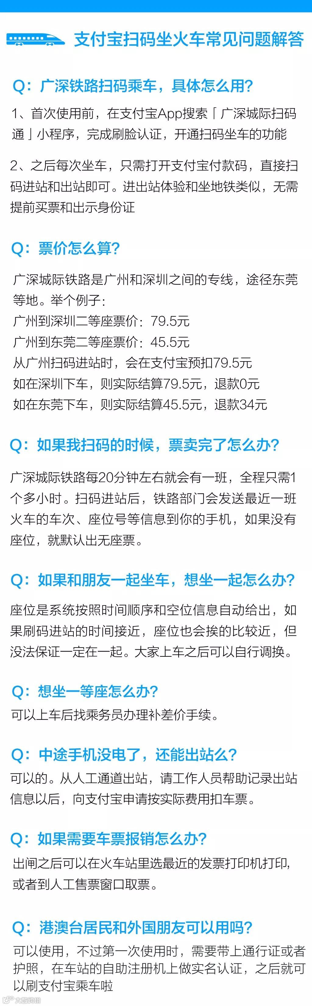 过去一年,支付宝首创的扫码乘车技术已经在包括北上广在内的120多个城市公交、地铁广泛应用,扫码过闸效率可以达到0.03秒/人。此次广深铁路在这一成熟技术的基础上,还加上了支付宝的预扣、实时结算等支付能力,让坐火车就像坐地铁成为现实。