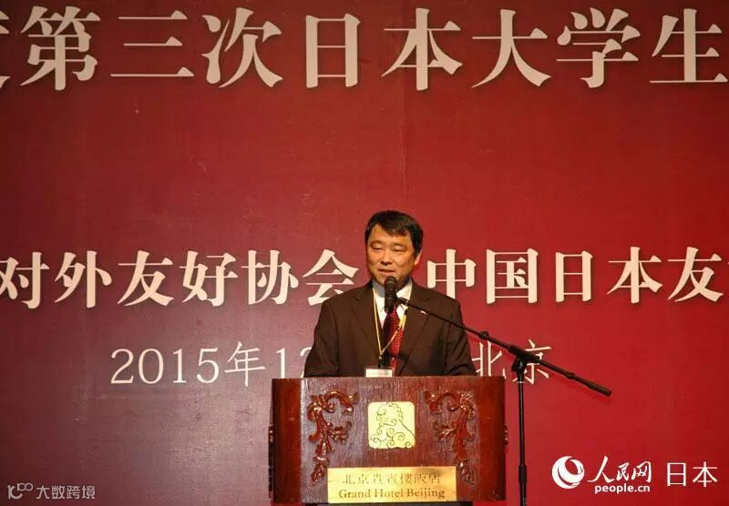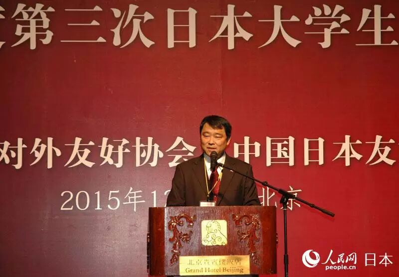 石飞节参赞在致辞中说,前几天北京出现了严重的雾霾天气,想必大家通过日本媒体的介绍都有所了解,当中有些人会动摇这次访华的决心。然而,一夜的北风吹过之后,人们再次迎来了蓝天白云的好天气,可是日本媒体的新闻中恐怕不会报道北京再次恢复晴朗天气。尽管北京的空气污染情况仍然很严重,却正在慢慢地得到改善,而日本电视节目中却只播放严重污染的情景,给人们冠以一种一年到头都是污染天气的印象。但是,实际情况并非如此。因此,在日本了解到的中国仅仅是中国的一小部分,如果不实地去看看,对这个国家的实际情况是了解不到的。他希望学生们在这次访问期间,身临其境感受中国,结交中国朋友,将友情带回日本,并用自己的语言向亲朋好友介绍一个真实的中国。