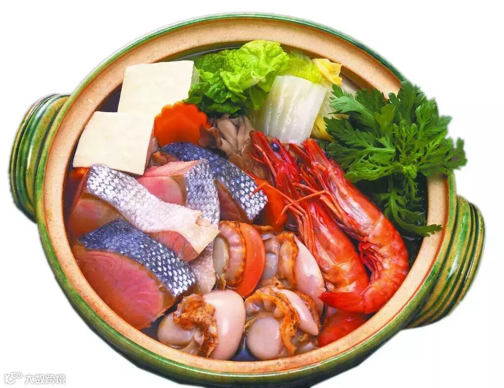 日本の鍋は中国の火鍋とやや異なる。まず鍋の材質は非常に地味で素朴な土鍋。重厚でどっしりとしており、色合いも華やかとは言い難いが、純朴な田舎臭さを醸し出しており、その鍋の分厚さは保温に優れている。また各家庭には鍋料理のためのカセットコンロがある。食材は新鮮な魚、エビ、貝類の他、冬の野菜の主流である白菜、ネギ、こんにゃくや豆腐などを煮ながら熱々のうちに食べる。