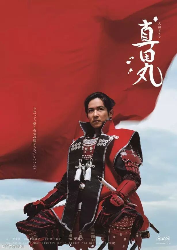 由堺雅人主演的2016年NHK大河剧《真田丸》日前公布了第一张海报。海报中,堺雅人身披红色铠甲,身后是飘扬的红色旗帜。