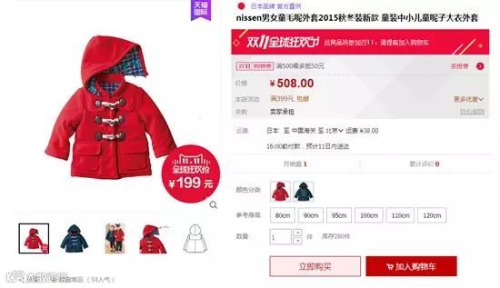 牛角扣大衣一直是经典的日系装扮,不妨趁着双11也给自家宝宝入一件吧。这款大衣分红蓝两色,内衬为经典工艺格子图案,帽子可拆卸,亲肤绒布更加柔软舒适。除此之外,nissen旗舰店还有多款童装参与双11活动,不容错过。
