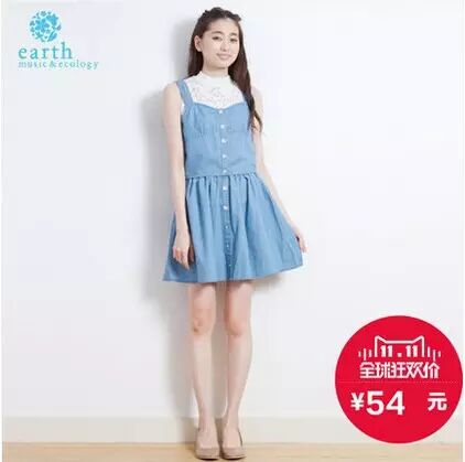 EME在今年的双11延续往年传统,除了当季商品折扣外,还将推出1折清仓。这款背带束腰牛仔连衣裙则充分展现了earth music的森系少女风,也可上下拆分成两件,随意搭配。