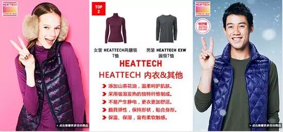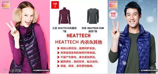 天冷了,你妈又喊你穿秋裤了吗?这款集轻薄、舒适、温暖于一体的HEATTECH内衣可谓是北方过冬秋衣秋裤的首选!HEATTECH系列内衣具有发热、保温、吸汗速干、除臭、散发衣服内湿气、弹力、防静电等功能,用户体验绝佳。肌肤触感柔滑、富有弹力的极细纤维,同时有圆领、V领、长袖、九分袖、八分袖之分。