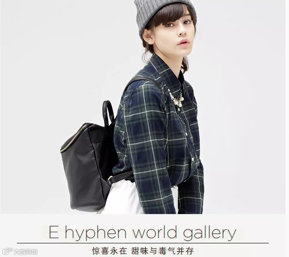 E hyphen与earth music&ecology同属亚洲最大型服装公司CROSSCOMPANY旗下,由知名买手石川康晴创立于1998年的日本东京,历经十数年的光阴,用其硬朗柔情兼具的风格,成为“甜味”与“毒气”并存的摩登风尚标杆,其合理的价格结合流行的设计品味更是使其深受喜爱。同时,作为时尚率性却不失甜美的女装品牌,E hyphen也得到众多独具风格的明星的追捧。