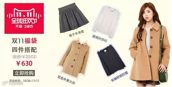 来自日本的majesticlegon是在Laforet原宿大为活跃的人气品牌,以甜美的色彩图案,细腻的设计手法,结合当前流行元素,深受日本女孩青睐。双11期间,majestic legon早早推出了“抢先购”,价格低至三折,并特别推出了“双11福袋”,四件单品,只需630元。
