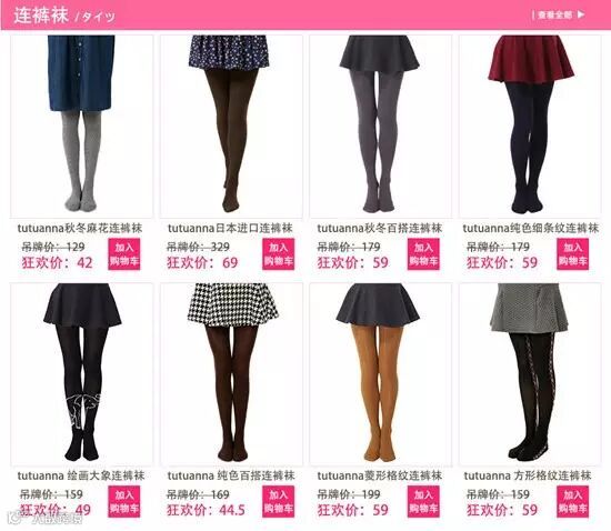 Tutuanna家最为著名的便是各式袜子。除了经典的动物袜、羊毛短袜以外,今年还有多款连裤袜参与双11活动,原价二三百的高品质连裤袜现在只需几十块,还有各种颜色及图案可选。