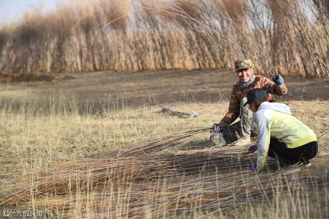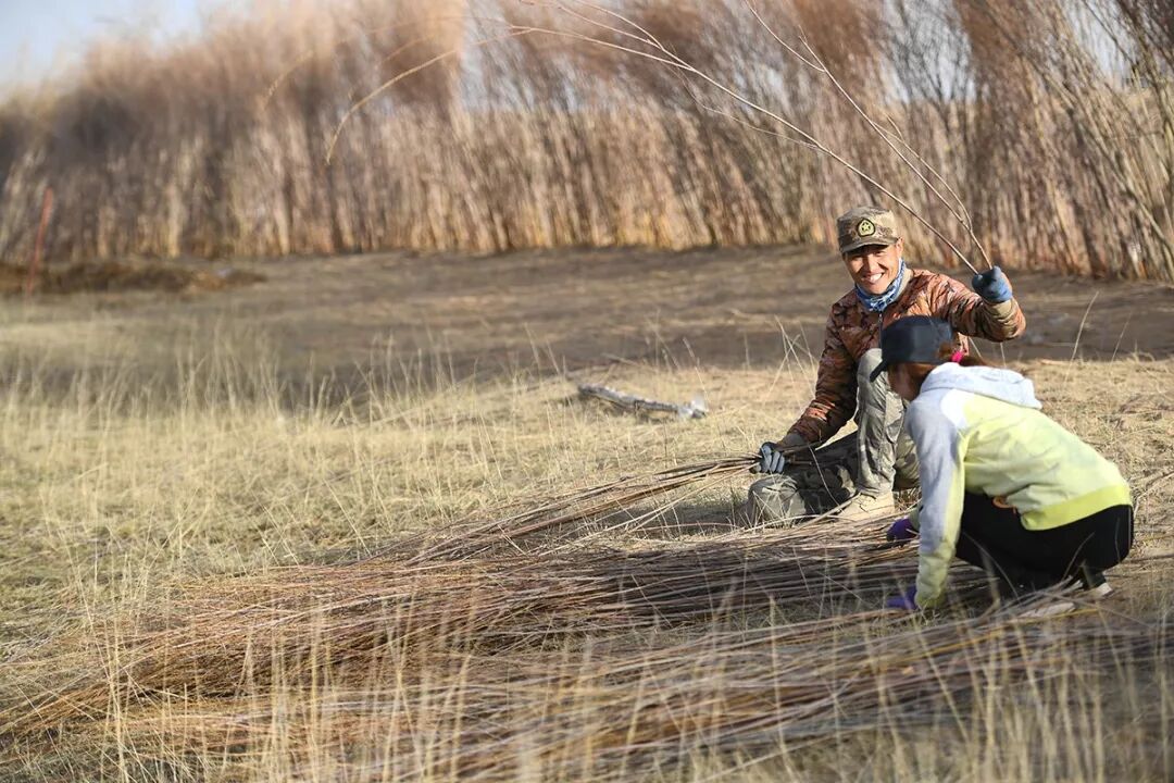 那木日一家有4300亩地,3000亩都是沙。「以前觉得只要照顾好草场就行,沙地反正没有什么用,现在不一样了。」那木日说,「父亲在家周围种上沙柳,治理了我们的家,而我要治好这片土地留给我的儿子大头。」他们家从去年9月开始种植蚂蚁森林的沙柳和柳树,现在已经种植了300亩。