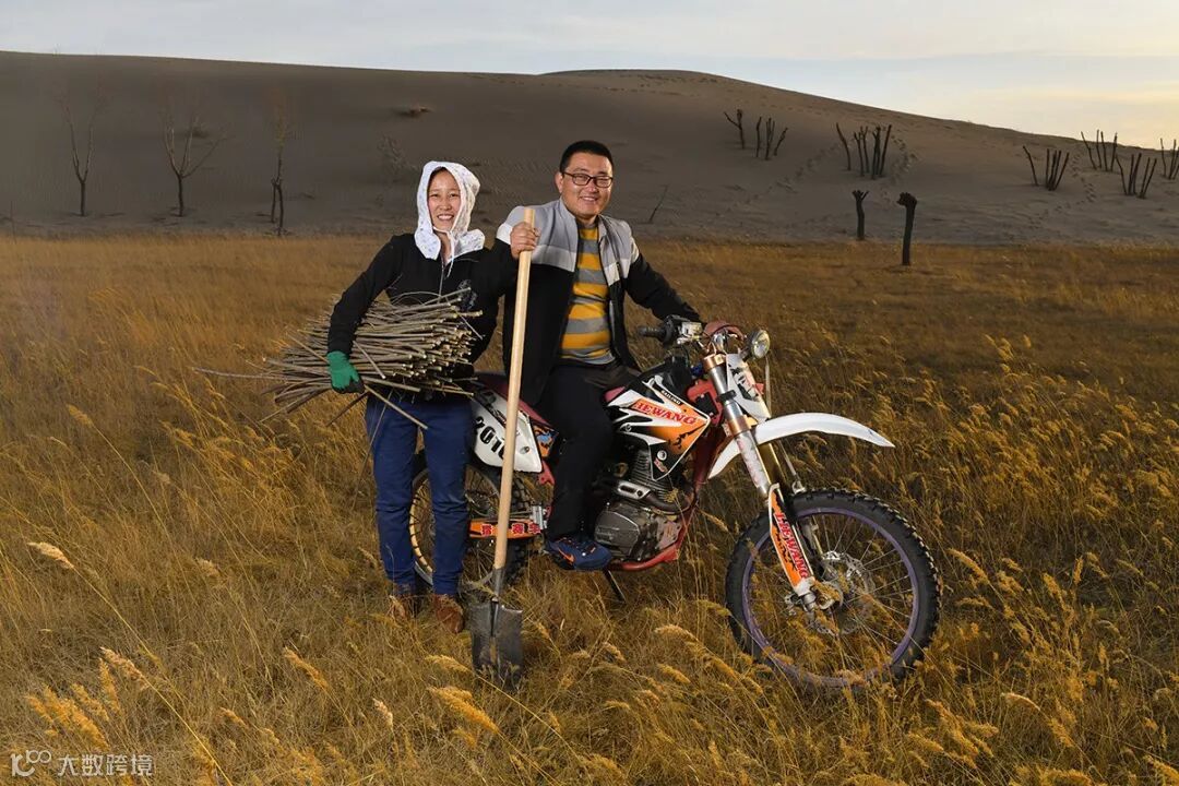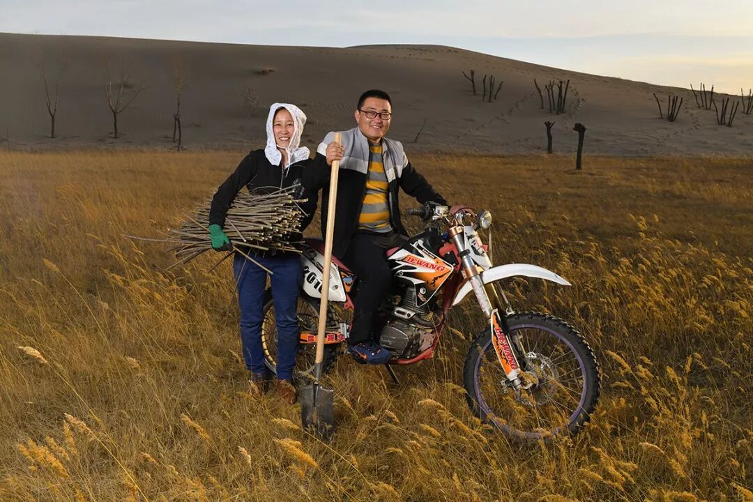 你可能想象不到,你在鄂尔多斯的那棵沙柳,没准儿就是这个骑摩托车的年轻人种下的。和敖智一样也是90后的那木日,一家都是蚂蚁森林种植牧民。