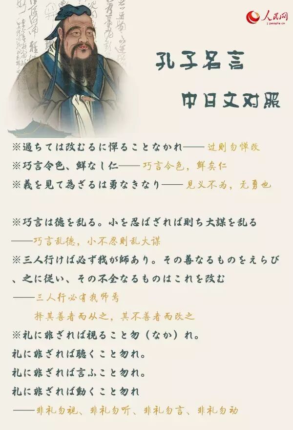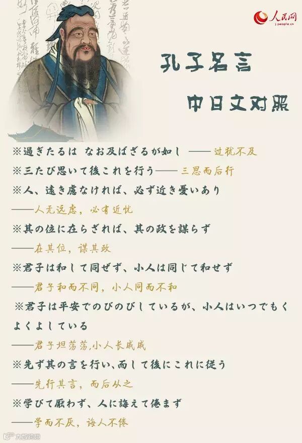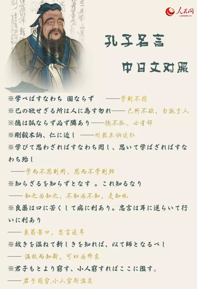 由周润发、周迅主演的电影《孔子》曾在2010年登陆日本影院,收获了良好的口碑。2012年3月,电视连续剧《孔子》在日本卫视热播,引起各方强烈反响。电视剧播出后,有关孔子和中华文化的书籍在日本销量大增,日本的电视观众和舆论对该剧多给予正面的积极评价。无论时代如何变迁,日本的政治文化生活中总离不开儒学的影子,孔子大量充满正能量的言论也不无做人的道理。今天就为大家选摘部分孔子名言,附上中日文对照版本方便学习记忆。