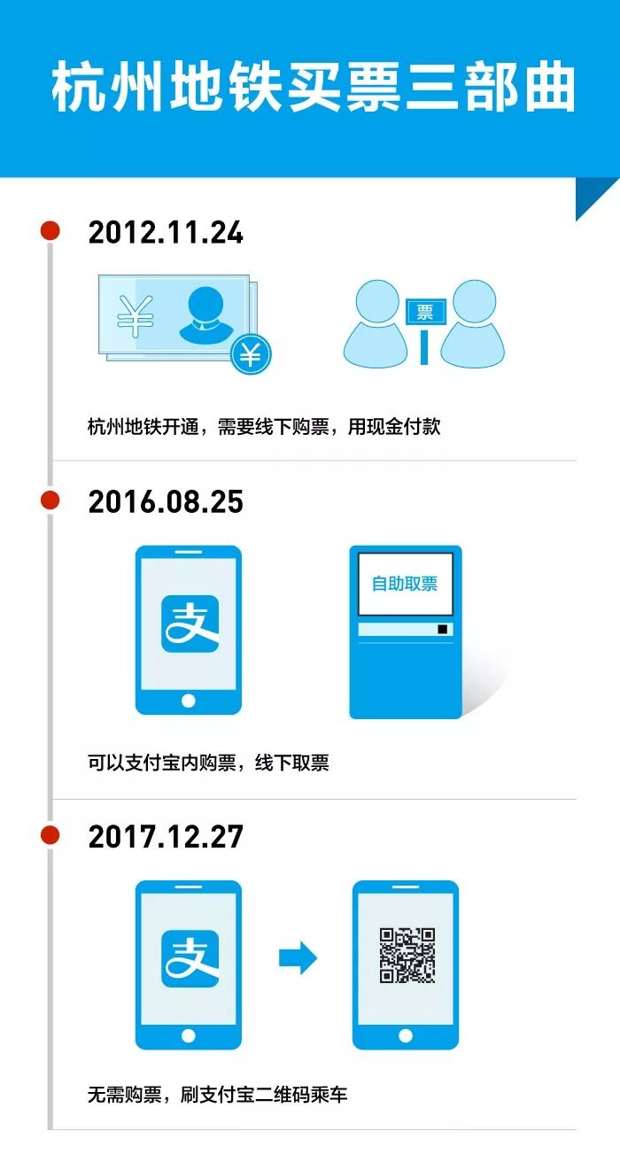12月27日下午5点起,杭州人不用买实体票,只凭手机里的支付宝,就可以在杭州72个地铁站乘地铁了!
