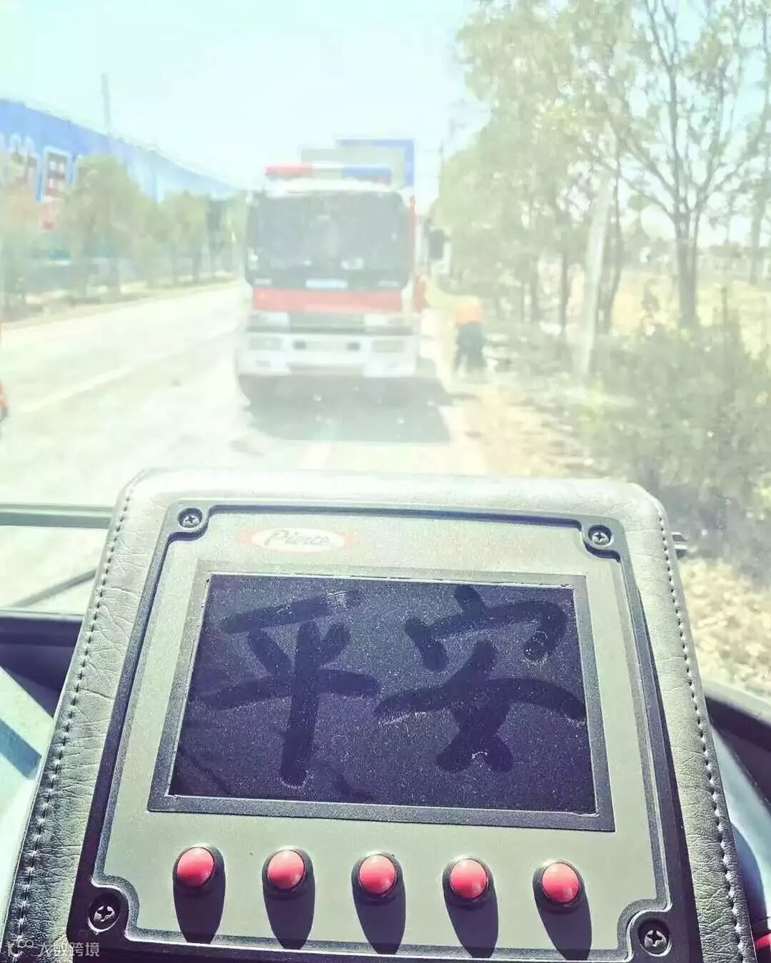 在消防车上的待命一名驾驶员,