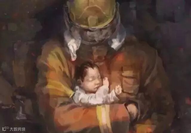 孩子被他紧紧抱在胸前,