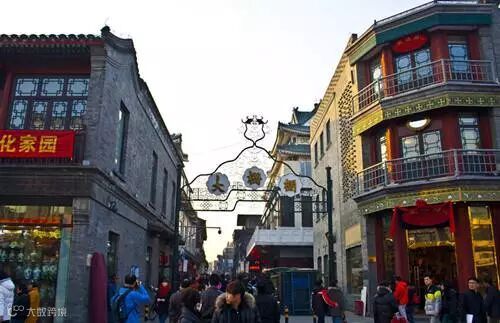 大柵欄商店街を歩くと、老舗の店舗がすでに営業を開始し、各地の方言を操る三輪タクシーの運転手が客の呼び込みを始めている。こういった大柵欄の賑やかな感覚は、いずれの観光客の心の中にも流れている。栗味の焼き芋を手にし、口で民間芸能の囃子の下りを口ずさむ。青い瓦が輝く古い街並みを通り過ぎると、店舗の中から馬褂(長衣の上に着る短い上着)を着て、おわん帽をかぶった店員が客の呼び込みをしている。一瞬にして百年前にタイムワープしたかのような感覚に陥る。