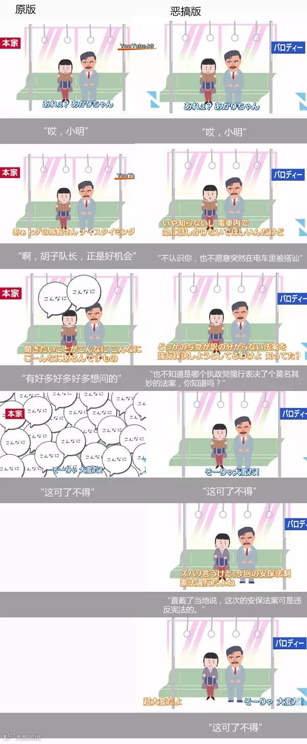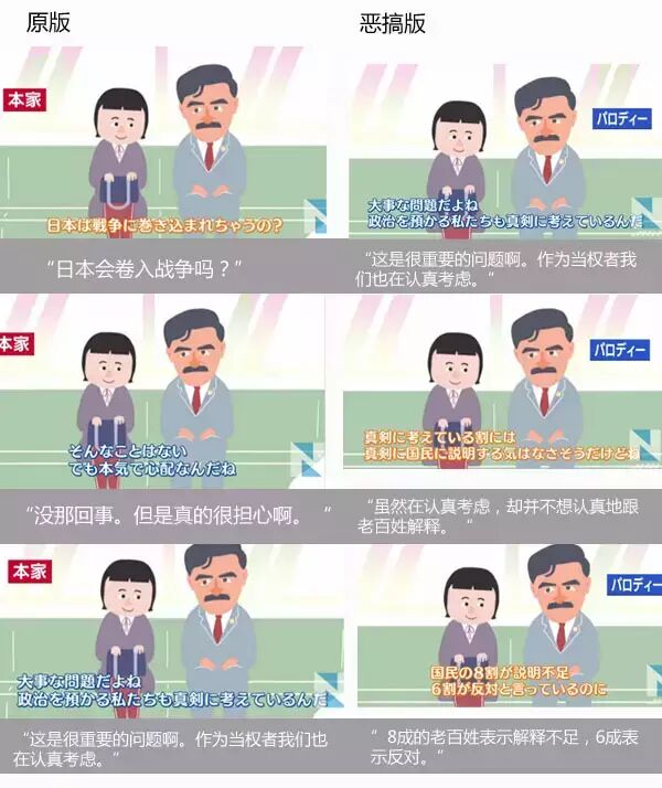 日本执政党自民党为了加强民众对新安保法案的理解制作了宣传视频,结果却遭到网友的恶搞,在网上引起很大反响。截止目前,恶搞版视频的回放数达到31万次,超过了原版。
