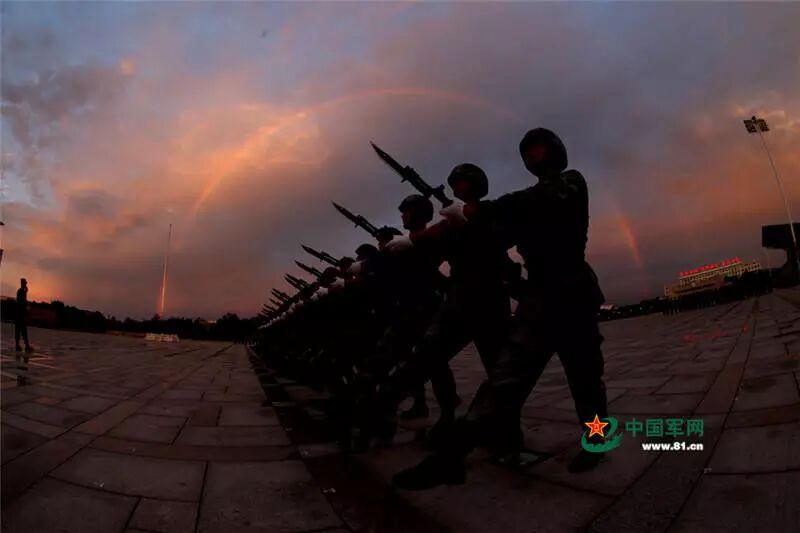 これらの写真は軍事パレード参加隊員の夜間の訓練風景を集めている。夜の間に、訓練中の兵士たちの情熱を感じてみよう。