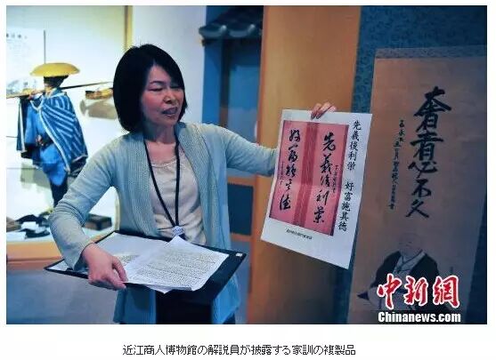 実家が滋賀県の東近江市にある塚本社長は、有名な日本3大商人(近江商人、大阪商人、伊勢商人)の中でも名声が高い近江商人の系譜を引いている。琵琶湖湖畔の五個荘町には、今も近江商人の古い屋敷が当時の姿のまま数多く残されている。地元にある近江商人博物館の中で、深い印象に残った展示内容はそれぞれの特色を持つ「家訓」だった。博物館の解説員はわざわざ家訓の複製品を取り出して見せてくれた。そこには、例えば、「奢者必不久」(奢れる者かならず久しからず)や「先義後利栄,好富施其德」(義を先にし、利を後にすれば栄え、富を好しとし、其の徳を施せ)、「利真於勤」(利は勤むるに於いて真なり)などの文字が書かれていた。実のところ、伝統的な中国の商人にとってもすべてなじみ深い言葉ばかりだ。近江商人全体に伝えられる「家訓」と見られているのが、現地で非常に流行したいわゆる「三方よし」(「売り手良し」「買い手良し」「世間良し」)という家訓だ。