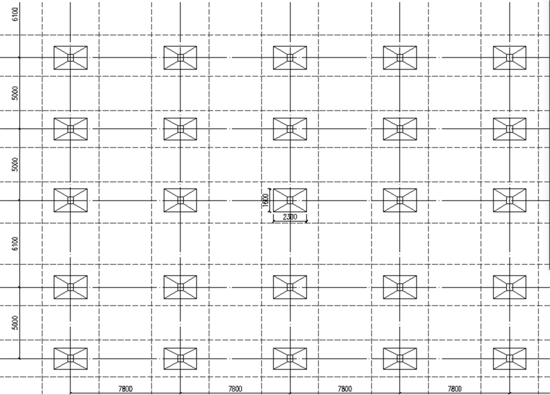 中柱网是介于大柱网与小柱网之间的一种方式。其优缺点也是介于中间。是当前大量采用的柱网方式。由于其有着明显的经济性优势,三个劣势,大承载力桩基础是非常明显的关键性要素,那么无梁楼盖也可以做,比如采用下图方式加了柱帽(把柱帽做成两个方向不一致)也能实现管线的敷设。但对于中柱网认为柱子偏多,柱子比较密,空间效果不好,相比之下是一定的,但会不会成为决定性因素,那么就是仁者见仁,智者见智了。一般豪宅项目不喜欢采用这种方式。对于轻奢以下定位的住宅小区地库,问题不大。对于中柱网的设置适合有一定的集中规模的地库(具体多大就没个定数了),都是“边角料”型的零碎空间不适合。
