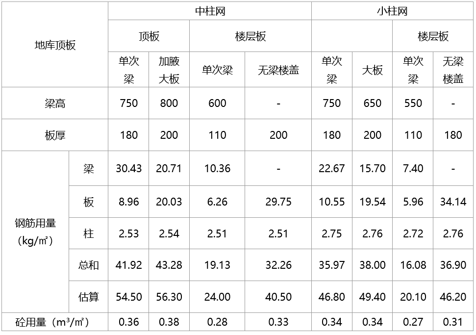 两个方案采用了相同的横纵尺寸,小柱网方案停车52辆,面积1130.22㎡;中柱网停车54辆,面积一样。中柱网多了两辆车。然后再比较土建成本。两个车位转换成节省的成本价值(每辆按10万),176.96元/㎡(20000÷1130.22)。下表影响的单方造价包括:钢筋(最多8kg/㎡)、混凝土(最多),其次还会有层高影响因素等影响;但估算也就几十的价值。当然这种估算水分也挺大,定量统计定性分析,基本上可以判断中柱网综合成本更低。如果加上品质问题,就不用比了,小柱网柱子及其密,空间效果也就及其差。