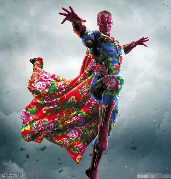 「飯(Fan)制」ポスターとは、ファンが作ったポスターを指す。欧米では「飯制」ポスターが流行しており、中にはオフィシャル版よりも美しくアイデアあふれる有名な「飯制」ポスターもある。中国にも「飯制」ポスターがあり、「青紅造了个白」さんによる「東北版アベンジャーズ」シリーズは典型的な「飯制」ポスターと言える。しかし一般的な「飯制」ポスターとは異なり、「青紅造了个白」さんは現在流行の要素を巧みに結びつけ、張馨予(チャン・シンユー)がカンヌ映画祭のレッドカーペットで着ていた衣装の東北地方独特のデザインを使い、独特のユーモラスなムードをかもし出している。