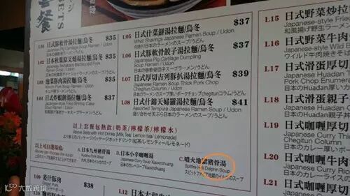 このメニューは、楽富美食広場内のラーメン店のもので、メニューには中国語の下に、英語と日本語の対訳が記載されている。しかし、英語と日本語に翻訳されたメニューは間違いだらけで、豚骨スープの英訳は「Dolphin soup」、日本語訳は「イルカスープ」と書かれており、ネットユーザーからは「残忍だ」という声が上がっている。また、「日式蒸蛋」の日本語訳は「日本人卵」とあり、これもネットユーザーから「日本人が生んだ卵のこと?」と突っ込まれている。正しい翻訳は、「茶碗蒸し」だ。