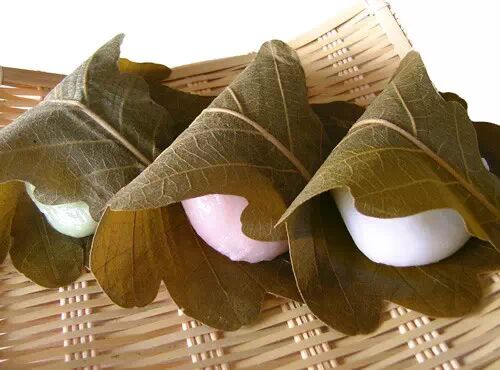 因为与端午同日,所以在这一天还会吃驱邪的糕团“柏饼”。据说柏饼所用的槲栎叶在新芽生出前,老叶不会掉落,有“子孙繁栄荣”之意。柏饼是和果子的一种,流行于日本关东地区,外型像中国的茶果,呈圆形或半圆形,以洗净的梗米干燥后磨成的上新粉(中间粗度的粉)制成,包入甜馅料,做好后加上日语称为“柏”的槲栎(学名:Quercus dentata)叶或菝葜叶对折包在外面即成。馅的种类有红豆粒馅、豆沙、味噌馅等。