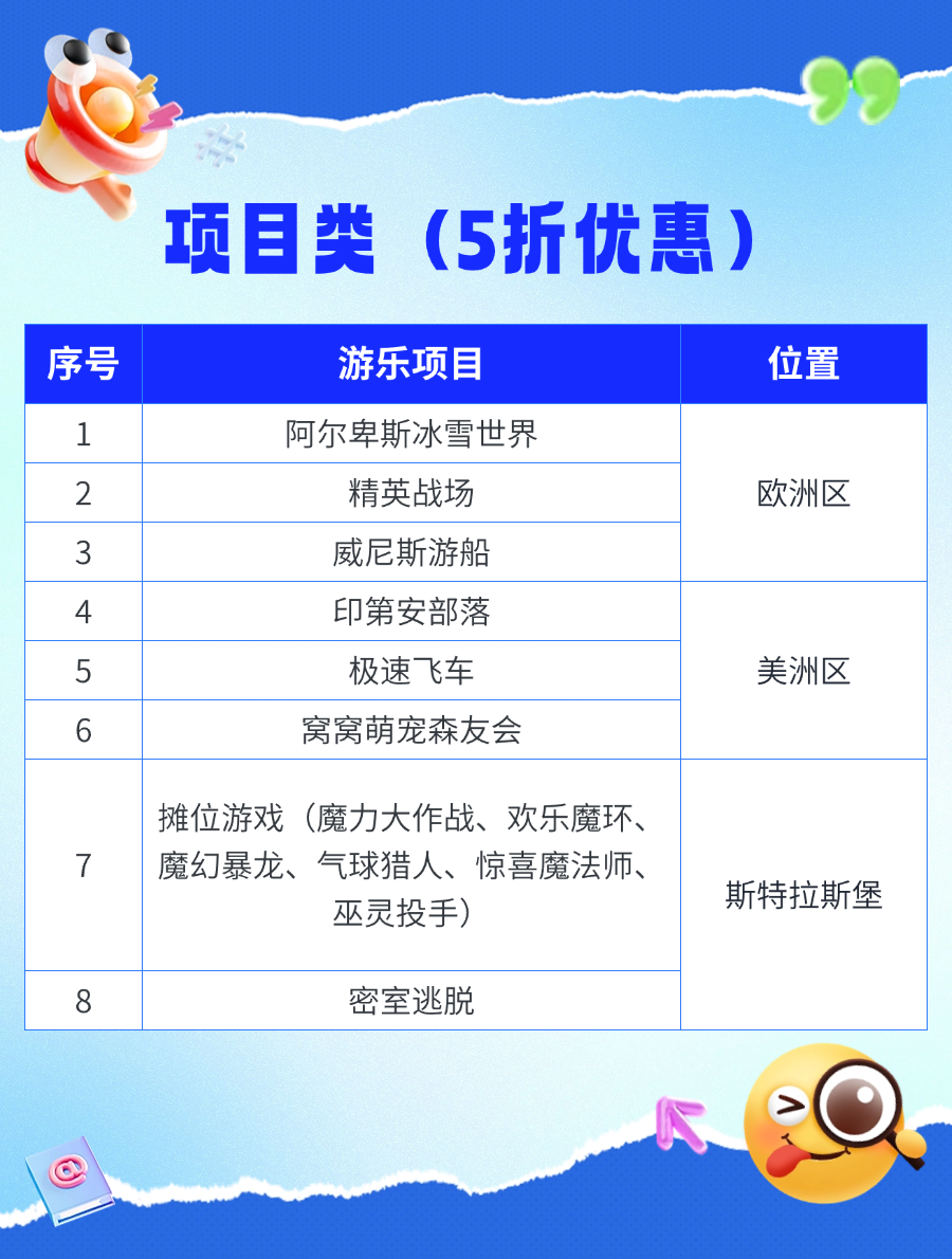 8项游玩项目5折