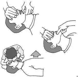 溺水者被救上岸后,使溺水者头朝下,立刻撬开其牙齿,用手指清除口腔和鼻腔内杂物,再用手掌迅速连续击打其肩后背部,让其呼吸道畅通,并确保舌头不会向后堵住呼吸通道。