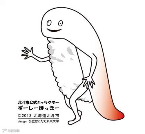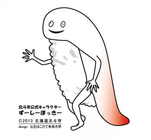 寿司北寄是北海道北斗市正式吉祥物,诞生于2013年,起初是为了宣传北海道新干线开业而设计。其创意来自于北斗市特产北寄贝和自产大米做成的寿司。寿司北寄在当年的吉祥物市民投票中脱颖而出,候选介绍为“不知在想什么,突然长出四肢爬行的生物。”