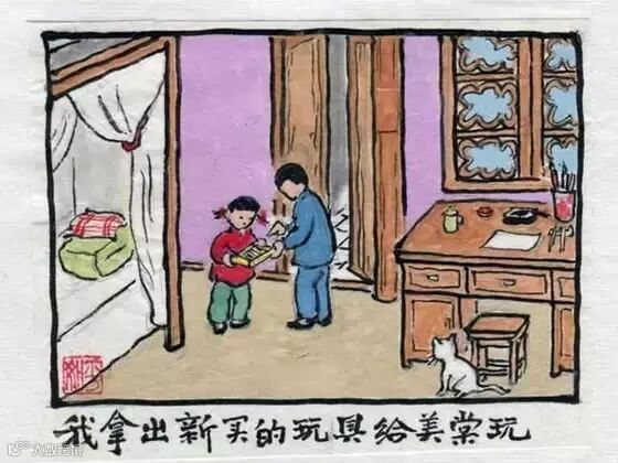「私は新しく買ったおもちゃを持ち出してきて美棠に遊ばせた」。「私たち2人の物語」は美棠の子ども時代から、一筆一筆描かれている。饒さんが11歳の時、春の終りのある午後に美棠さん一家が家を訪れた。8歳の美棠さんが両親の部屋がある棟から後ろの棟までやって来た。お客の子どもをもてなすため、饒さんは新しく買ったおもちゃを出してきて彼女に遊ばせた。