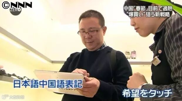銀座の老舗デパートでは買い物客の1割が中国人だという。デパートは新兵器のタブレット端末を用意している。画面には商品に関する情報が中国語と日本語で表示され、客は希望のサイズなどをタッチして店員に伝えることができる。