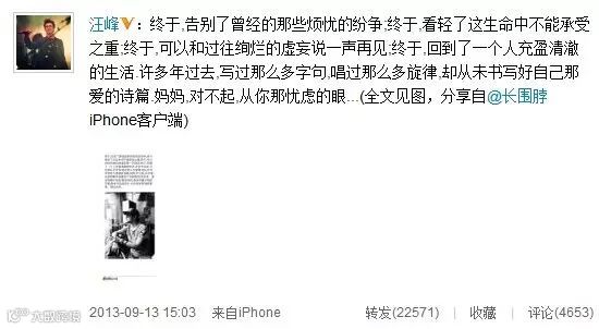2人が知り合った時、汪峰には妻がおり、章子怡にも恋人がいた。2人の接近する様子がひとつずつ、ネットユーザーによって暴露されるに伴い、汪峰はついに意を決し、当時の妻と別れることを公に宣言した。これによって、章子怡の心に大きな安心感が生まれた。