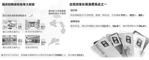 国慶節(建国記念日、10月1日)の大型連休は消費の黄金期間だ。今年の連休期間中、全国では何にお金が使われたのだろうか。中国銀聯の銀行間取引システムとビッグデータプラットフォームから提供された一連のデータから、いろいろな回答を引き出すことができる。