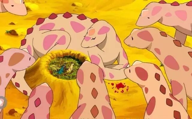 随着长大,他慢慢地发觉自己牙齿锋利、不喜欢吃草,喜欢肉的味道,他非常伤心,觉得自己不像妈妈,不像同类。