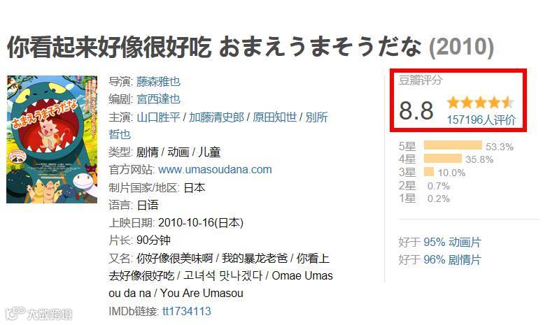 但电影的豆瓣评分高达8.8,好于95%的动画片。