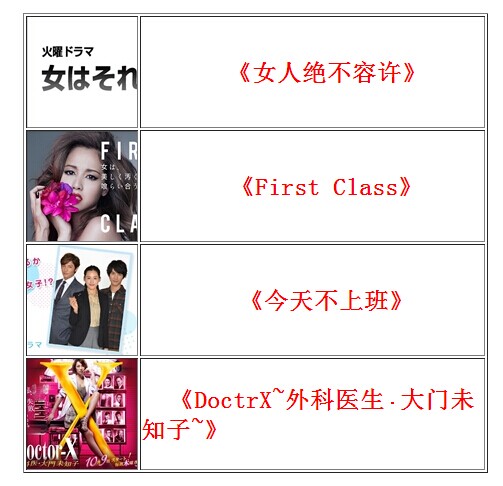 在14年的秋季日剧中,少女漫画×绫濑遥再度复活!带给大家最爱的“别扭女子”。虽然这些都是缺乏女性魅力的“别扭女子”,但她们可都是数一数二的女强人:《今天不上班》讲述了关于30岁未婚女性的故事、《DoctorX》中的派遣女医生永远不会失败……大家的共同特点就是在性格有些不合群。而在《First Class》、《女人绝不容许》中,更是升级成了女人间恐怖的战争。我行我素、性格强势的女性们选择的人生道路,千万不要错过!
