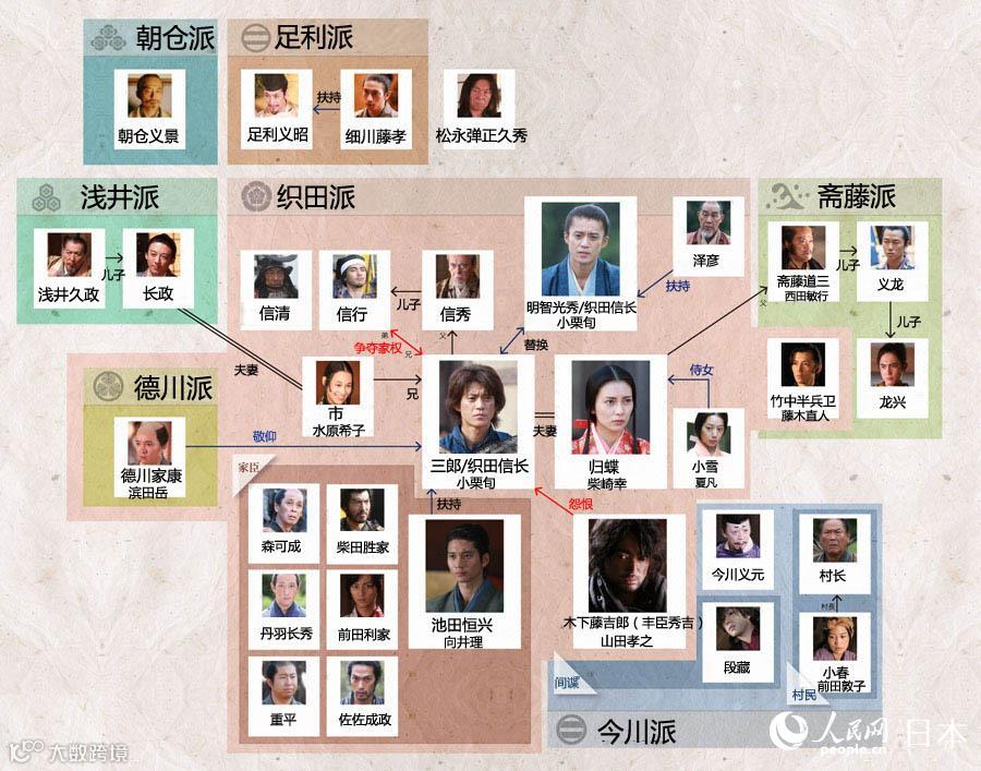 由同名漫画改编的历史穿越剧《信长协奏曲》目前正在热播中。作为富士电视台为庆祝建台55周年的特别企划,该剧请到了小栗旬作为主演,柴咲幸、向井理、山田孝之、藤木直人等豪华阵容参演。该剧剧情上看似离奇但又与日本的真实历史巧妙吻合,让人不得不惊叹编剧的妙笔生花。目前,该剧已播出5集,收视率在秋季日剧中一直位居前三,在国内搜狐的点击也超过260万。该剧整体风格轻松诙谐,但是对于对日本历史不太了解的观众来说,陌生的人物名字以及复杂的关系显得有些难以消化。小编在此稍作整理,通过一张图看懂《信长协奏曲》,了解日本战国时期的历史人物关系。