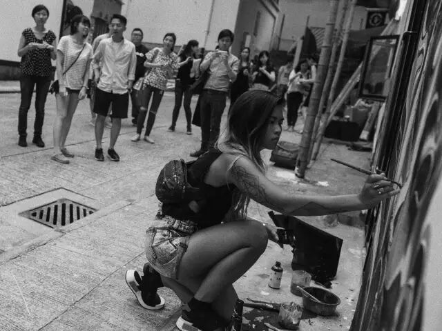 在香港上环差馆上街,何文蕙与其他6位新锐艺术家一起,用「空气墨水」尝试了一次不一样的创作。