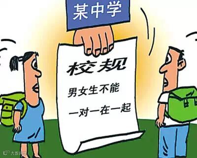 成都商報の2011年の報道によると、成都塩道街中学(中高一貫校)は、中学・高校生に対する礼儀教育の一環として、厳格な校則を定めている。同校関係者は、「本校では、中学生と高校生が異性と接する際の、妥当な物理的距離を定めている。一般的には、80センチから1メートルとし、50センチより近くなると親密な付き合いと見なされる。公共スペースで、生徒が異性と50センチ以内の距離で接した場合、教員が当人を注意、叱責し、重大なケースでは処分を行う」と述べた。