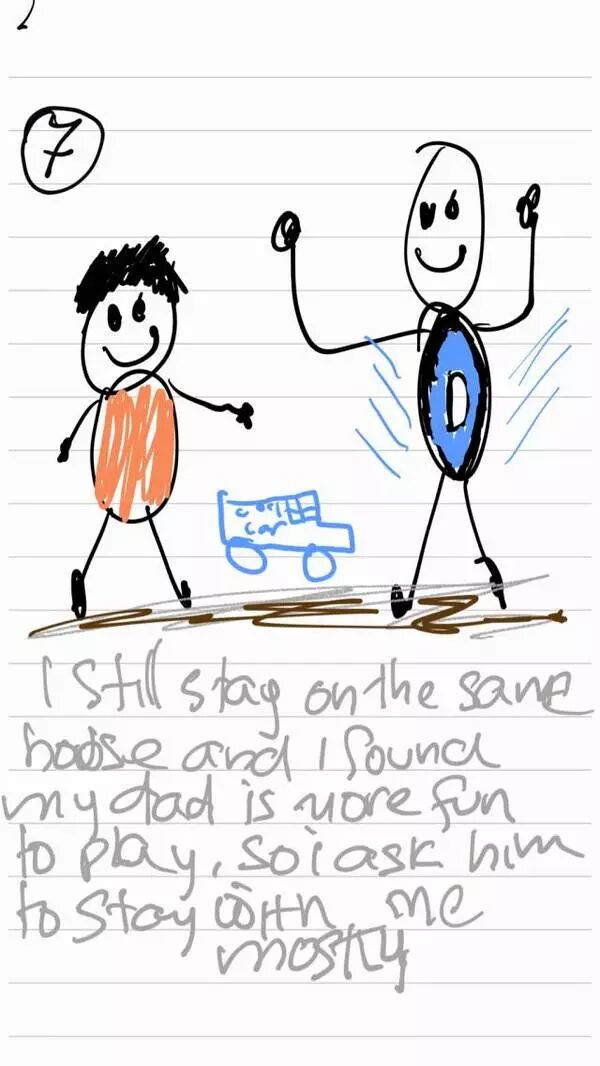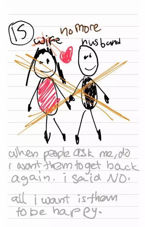 一个来自印度尼西亚的小男孩,名字叫做Azka,画了一组名为Story of a Broken Home Kid 的漫画,来讲述他的爸爸妈妈离婚后的故事,分享了自己对“离婚”的“不一样”的感受。