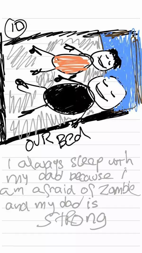 因为我很害怕僵尸,而且爸爸很强壮。