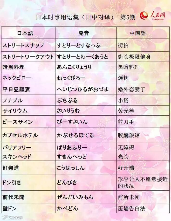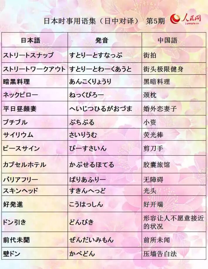 为方便读者理解日本新闻,学习报道中的新词,人民网日本频道新开设《日本时事用语集(日中对译)》板块。板块中广泛收录日本新闻报道中常用的政治、经济、社会、文化等方面的词汇,并将定期更新。希望该板块能够给读者朋友们带来帮助。