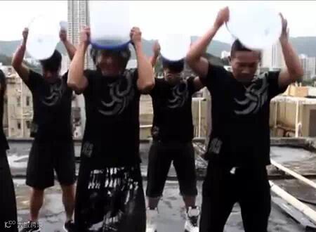 「アイス・バケツ・チャレンジ」に挑戦する鄭伊健、陳小春、谢天華。