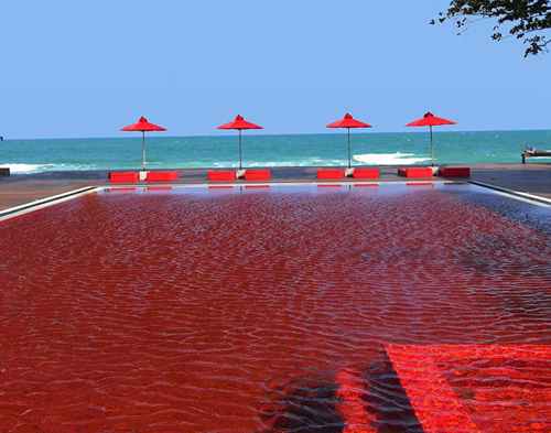 タイのサムイ島にあるホテル「THELIBRARY」の赤いプール
