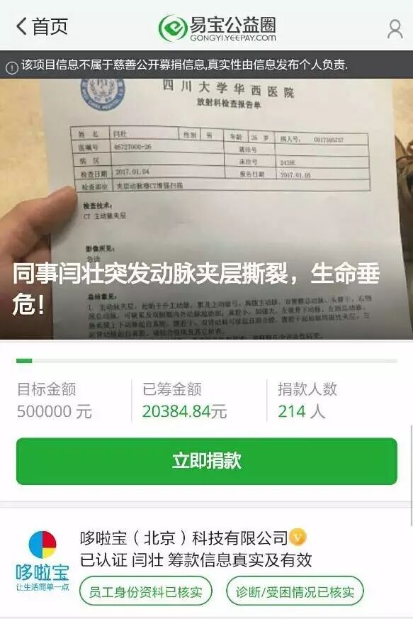 从今天下午2点发起募捐,截至晚7点,短短五个小时,