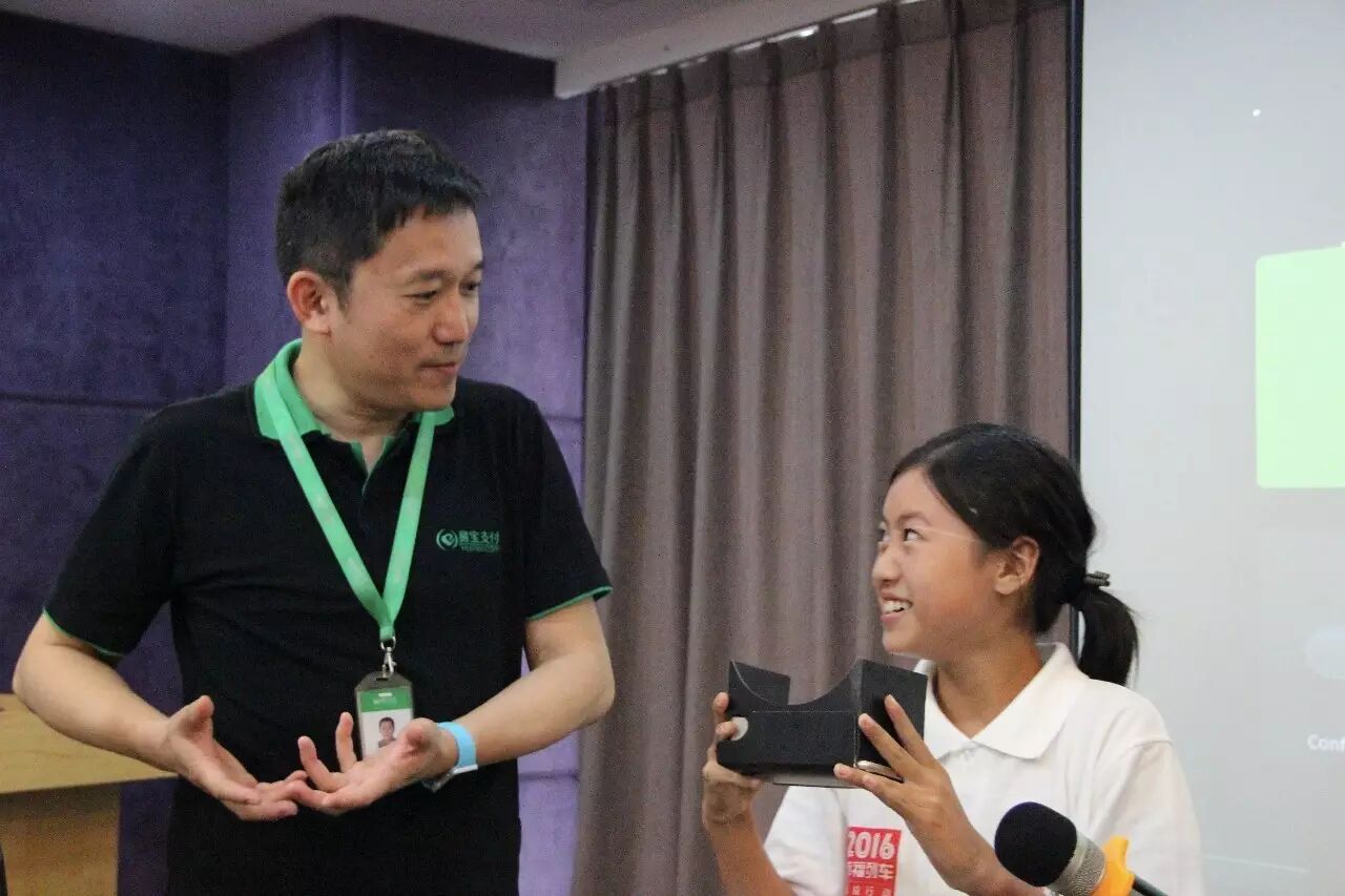 易宝支付高级副总裁余晨特意为孩子们安排了一趟别开生面的互联网课堂,手机机吹出美妙的曲子、智能家居介绍、谷歌vr眼镜体验、会转动的猫耳朵······一件件互联网科技产品让孩子们眼前一亮,体验到互联网发展产生的更多想象。第一次见到这些新鲜玩意的孩子们的眼睛里充满好奇,急迫地想“零距离”和余老师互动体验互联网高科技的魅力。