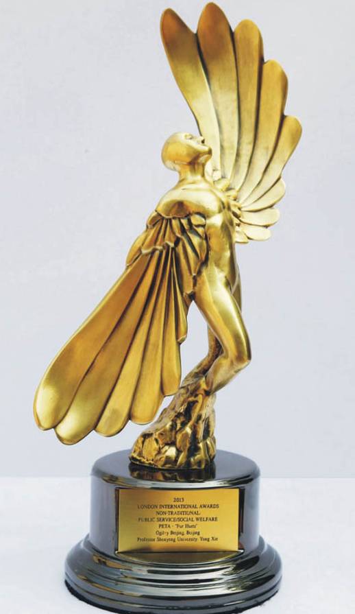 正如他为了爱,为了不再看到被剥掉皮的动物空洞的眼神,创作出公益装置作品——《千针万痛》,变动物皮毛为钢针,扎进硅胶模型里。但凡看过这部作品的人,无一不发出“一件皮草,千针万痛”的慨叹。