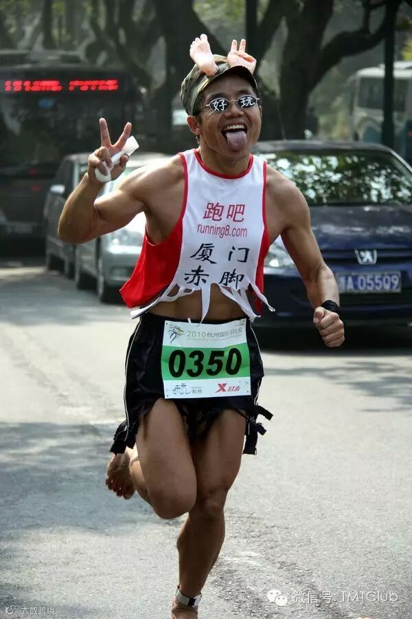 一双合适自己的鞋子是首当其冲需要准备的,不仅是参赛的基础,也帮助新手降低受伤的风险。注意:不要穿新鞋参加比赛,请穿着平时惯穿的鞋子。即使是新鞋,至少穿上训练磨合1个月再投入比赛,避免因为脚不适应,或鞋子不够松软而受伤不适。新手请勿尝试赤脚跑马拉松,记住一句真理:no zuo no die!!!